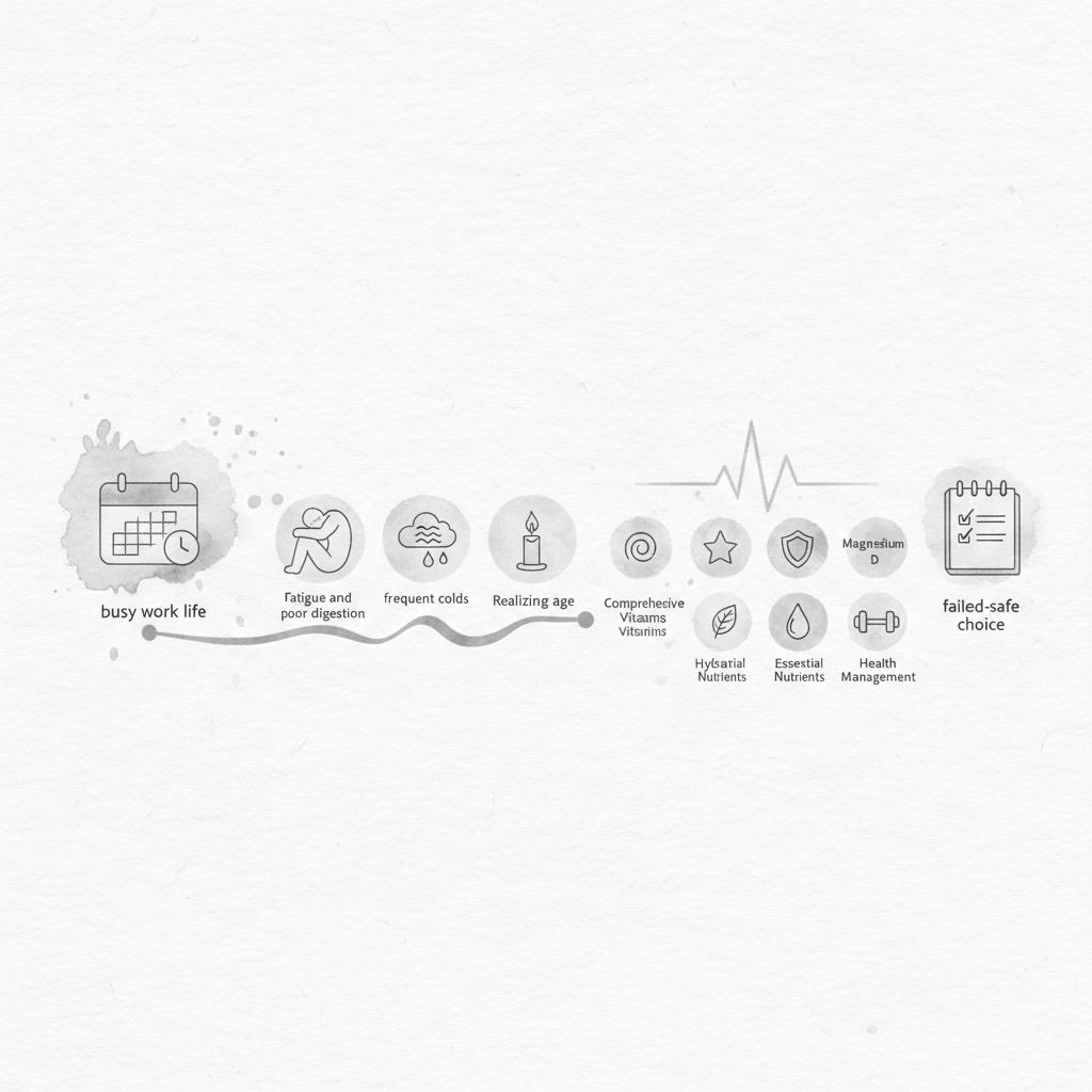 바쁜 직장 생활에 치여 내 몸 하나 챙기기 버겁다는 40대. 하지만 피로감, 소화 불량, 잦은 감기 등 '나이가 드는구나'를 실감하게 하는 신호들이 하나둘 나타나기 시작합니다. 특히 건강검진 결과지에 빨간 줄이 그어지기라도 하면, 뭔가 챙겨 먹어야 할 것 같은데 무엇부터 시작해야 할지 막막하게 느껴지실 겁니다.